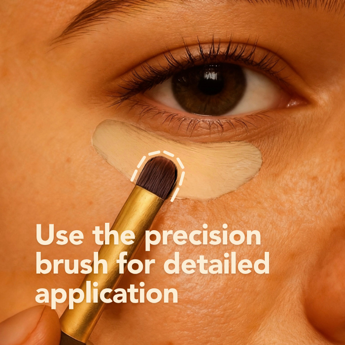 Our precision brush gives you total control — perfectly shaped for seamless blending and flawless coverage.